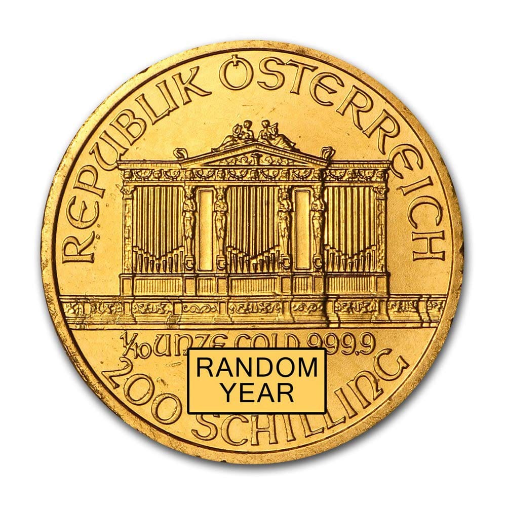 1989 - Presente (Año Aleatorio) Moneda Filarmónica de Viena de Oro Austriaco de 1/10 oz Brillante Sin Circulación con Certificado de Autenticidad 200ATS BU