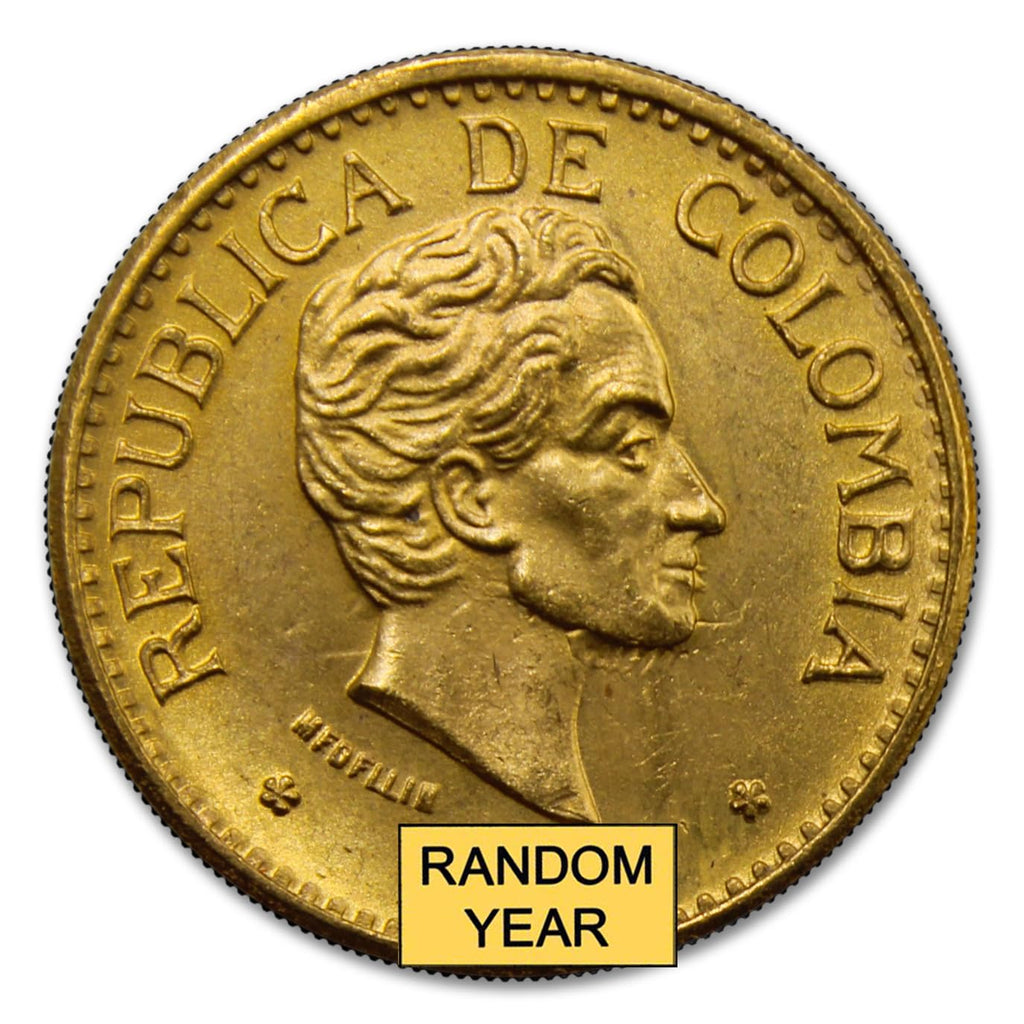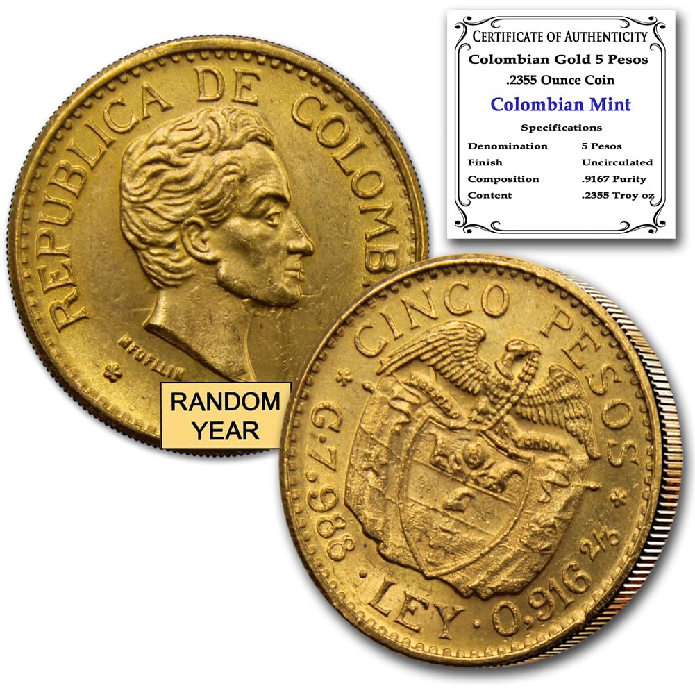 1919-1930 (Random Year) Colombia Gold 5 Peso Coin About Uncirculated (Type 1 or Type 2) with Certificate of Authenticity - Moneda de Oro Puro de 5 Pesos 5 COP AU