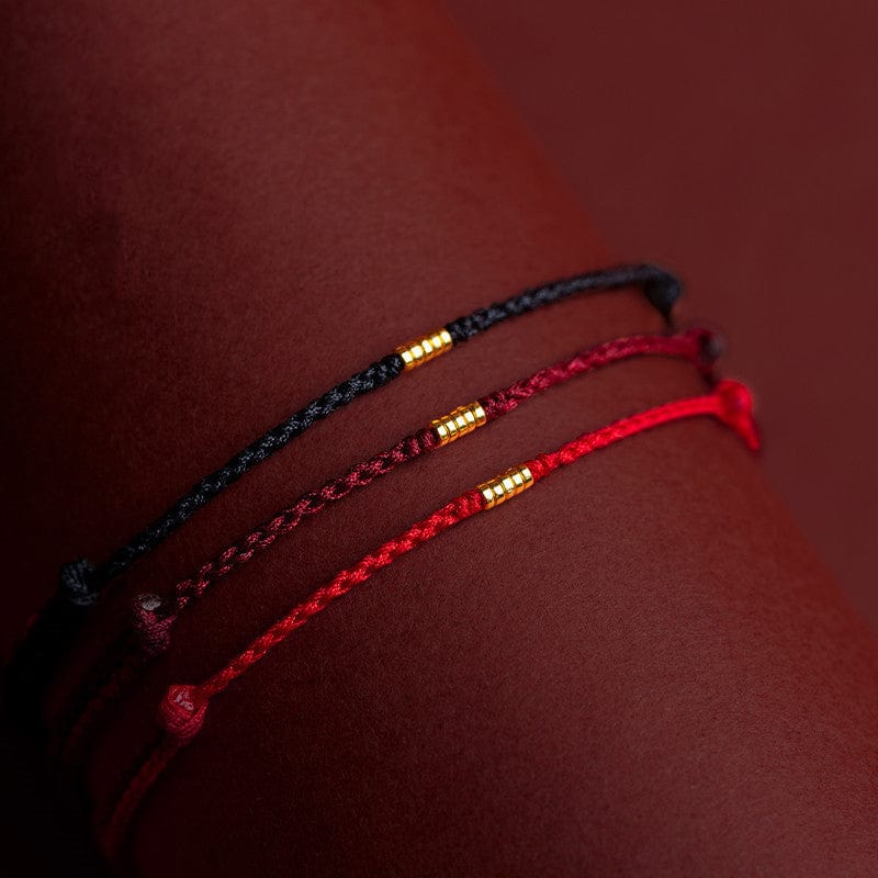 Handmade Red String Bracelet with Gold Beads – Adjustable Lucky Charm Jewelry