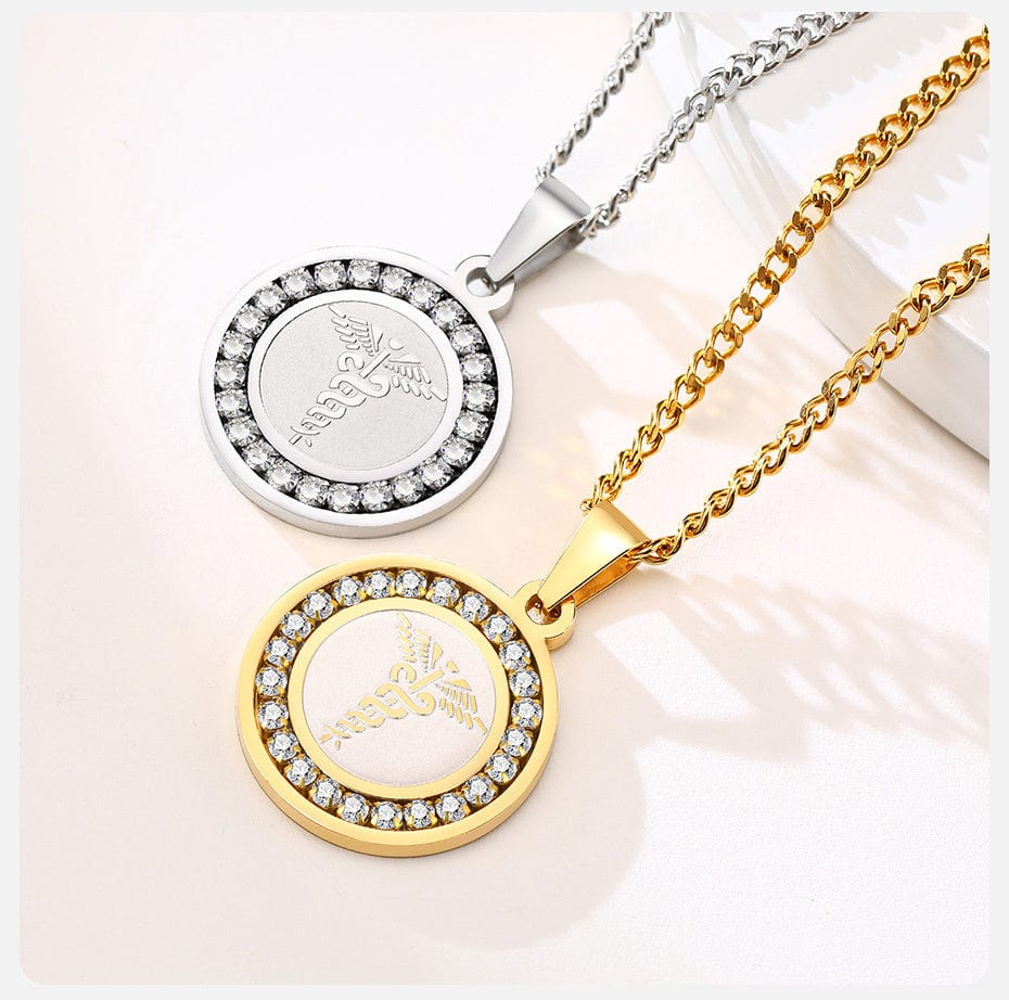Med Alert Necklace - Custom Engraved Stainless Steel Tag for Emergency (24" Chain)