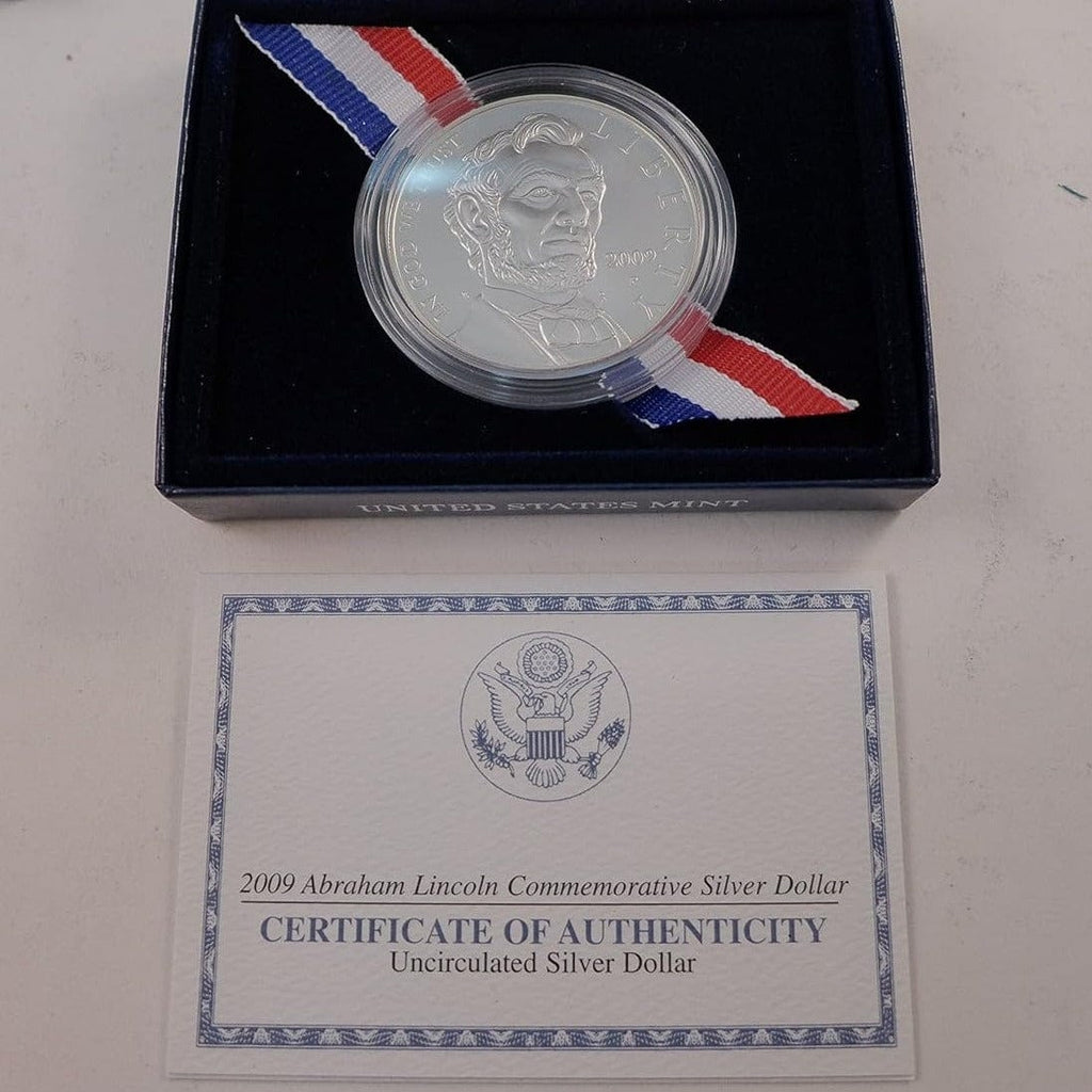 Abraham Lincoln Commemorative Silver Dollar Uncirculated version encapsulated with the original box and COA.