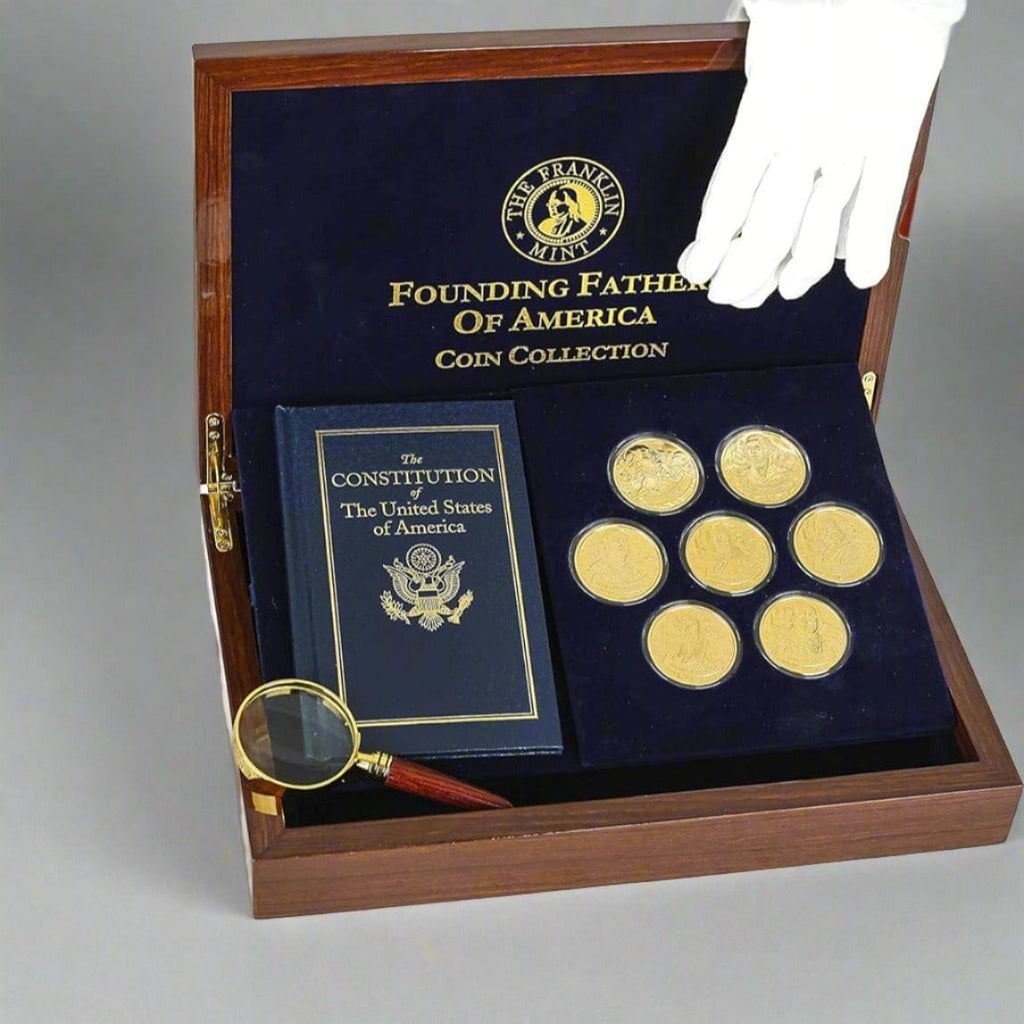 7-Pieces Franklin Mint Founding Fathers 24K Gold-Plated Coin Collection - Complete Set